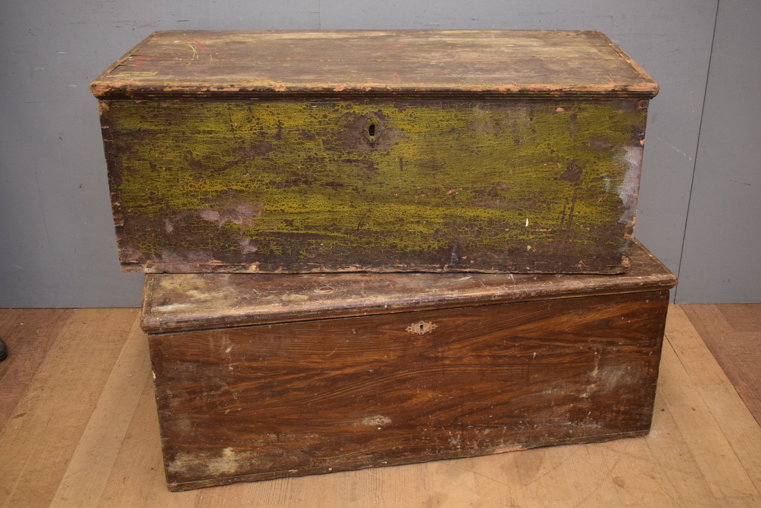 TWO ANTIQUE PINE TRUNKS (A/F) ( 48H X 120W X 61D CM) (PLEASE NOTE THIS HEAVY ITEM MUST BE REMOVED BY CARRIERS AT THE CUSTOMER'S EXPENSE. LEONARD JOEL STAFF CANNOT ASSIST CARRYING THIS ITEM) (X-LARGE ITEM)
