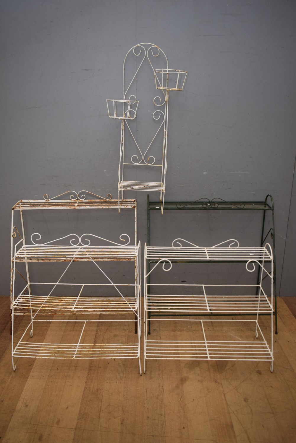 A COLLECTION OF FIVE MID-CENTURY PLANT STANDS (A/F) ( 86H X 85W X 51D CM) (LEONARD JOEL DELIVERY SIZE: LARGE)