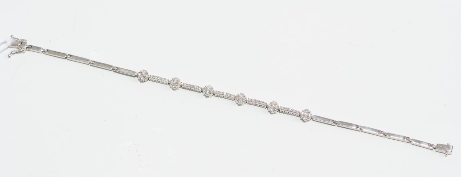 A DIAMOND BRACELET IN PLATINUM AND 18CT WHITE GOLD, TOTAL LENGTH 18CM