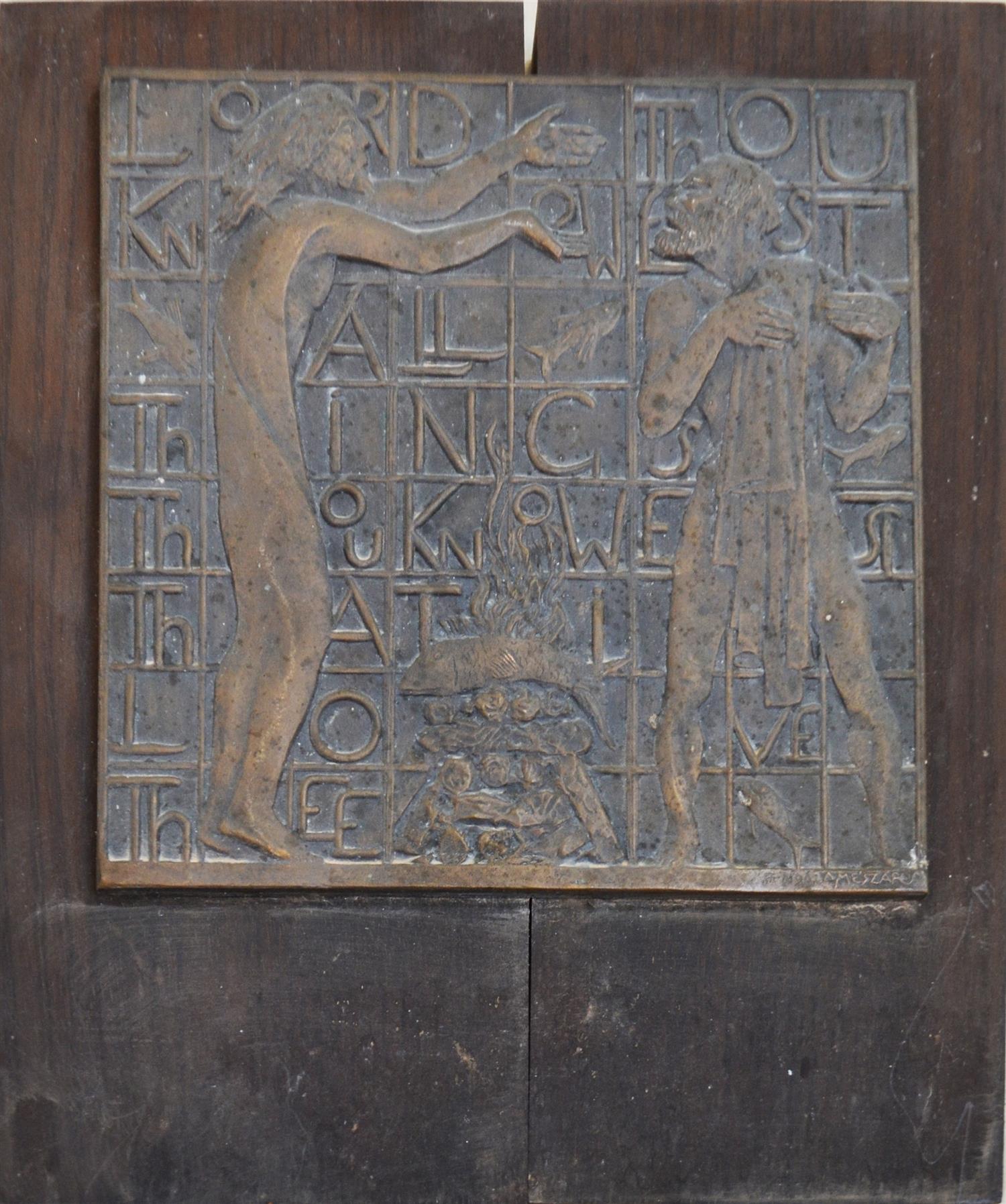 ANDOR MESZAROS, UNTITLED, PLAQUE ON WOODEN BACKING BOARD (SPLIT), 20.5 X 20.5CM (PLAQUE ONLY)