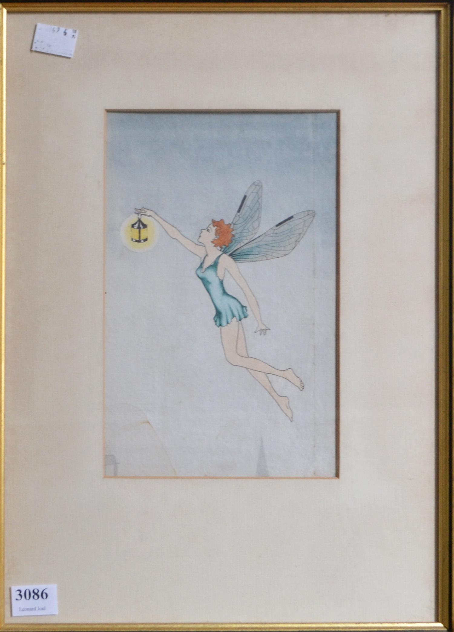 SCHOOL OF IDA RENTOUL OUTHWAITE, FAIRY, WATERCOLOUR, UNSIGNED, 21 X 13CM, CONDITION: CREASE MARK ALONG VERTICAL LENTGH OF RIGHT SIDE, APPROX 20CM. SOME DISCOLOURATION IN LOWER LEFT MOST LIKELY DUE TO WATER STAINING. OVERALL, IN FAIR CONDITION CONSISTENT WITH AGE. LEONARD JOEL DELIVERY SIZE: SMALL