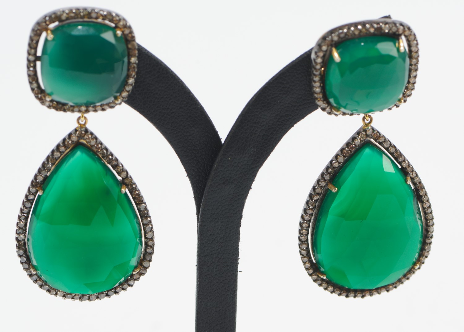 A PAIR OF CHRYSOPRASE AND DIAMOND EARRINGS TO POST AND BUTTERFLY FITTINGS