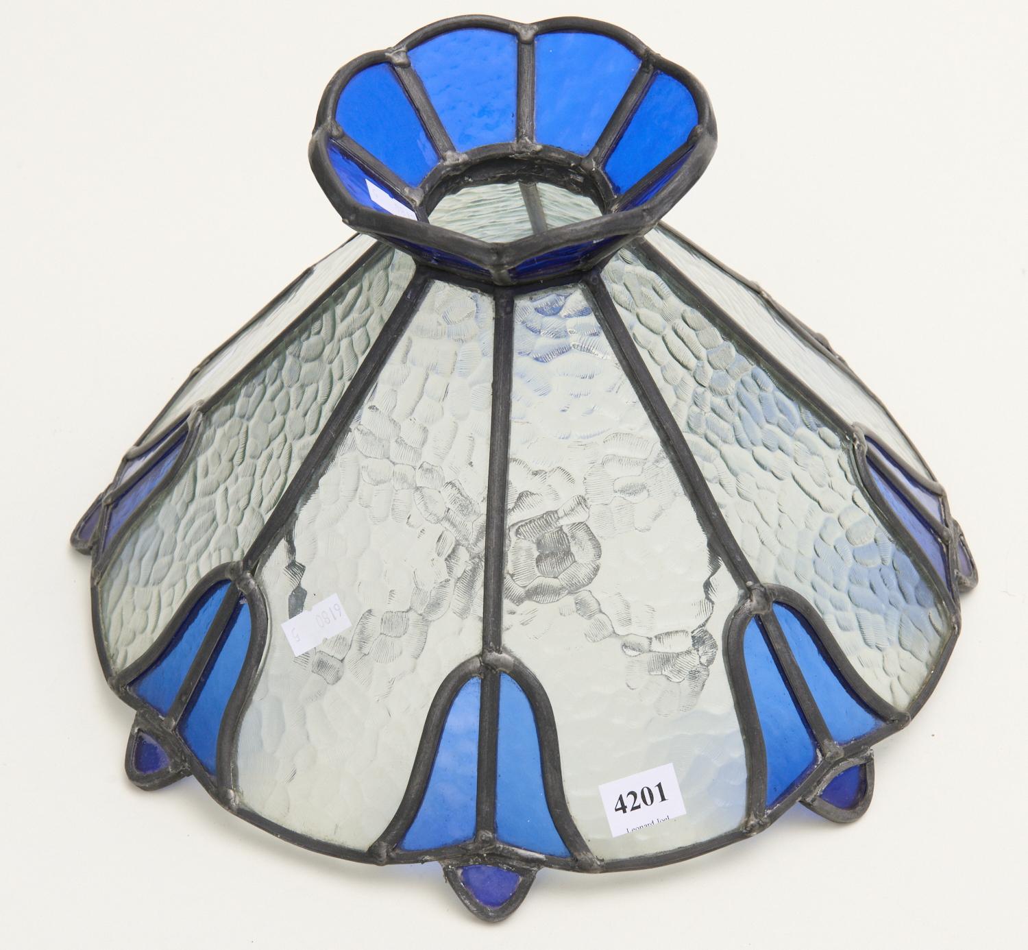 AN ART NOUVEAU LEADLIGHT GLASS SHADE DIA.33CM, LEONARD JOEL LOCAL DELIVERY SIZE: SMALL