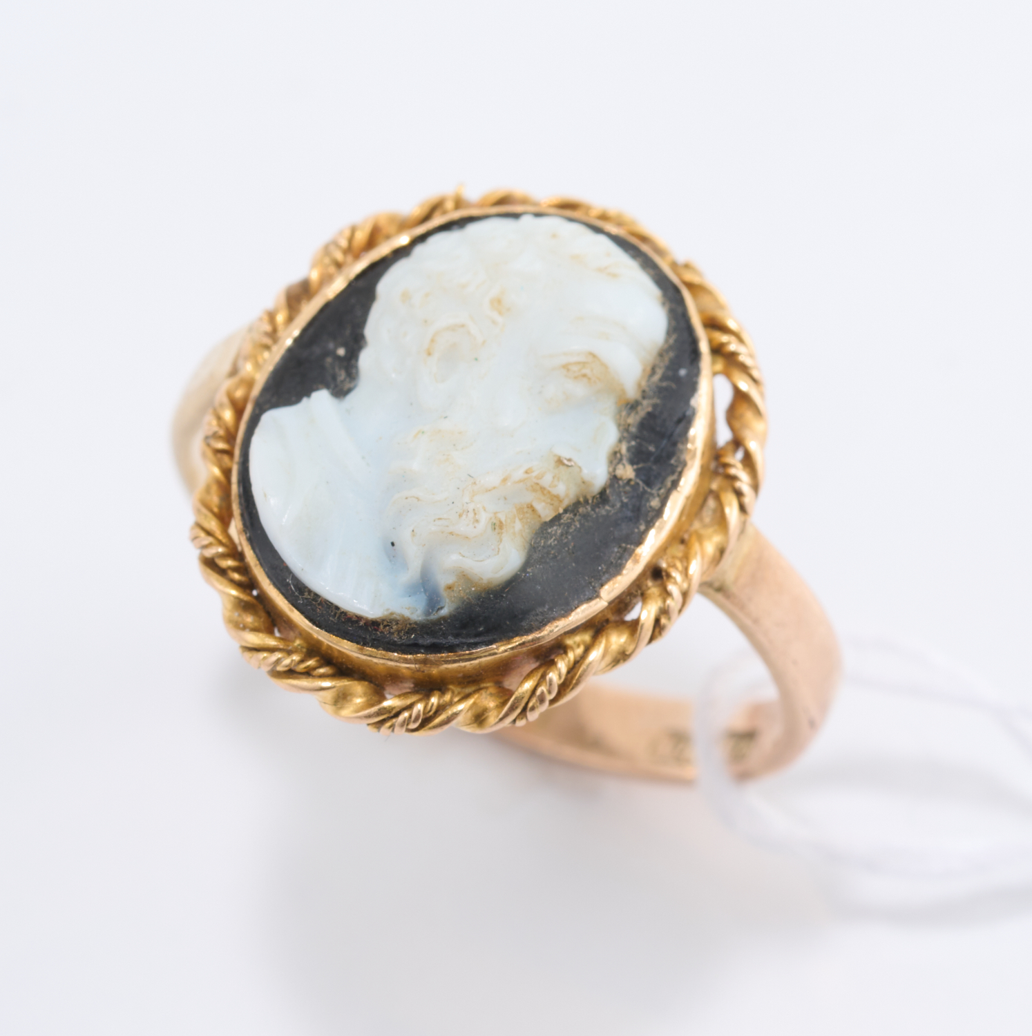 A HARDSTONE CAMEO RING, DEPICTING THE PROFILE OF A BEARDED GENTLEMAN, IN 9CT GOLD, RING SIZE K/L, 3.2GMS