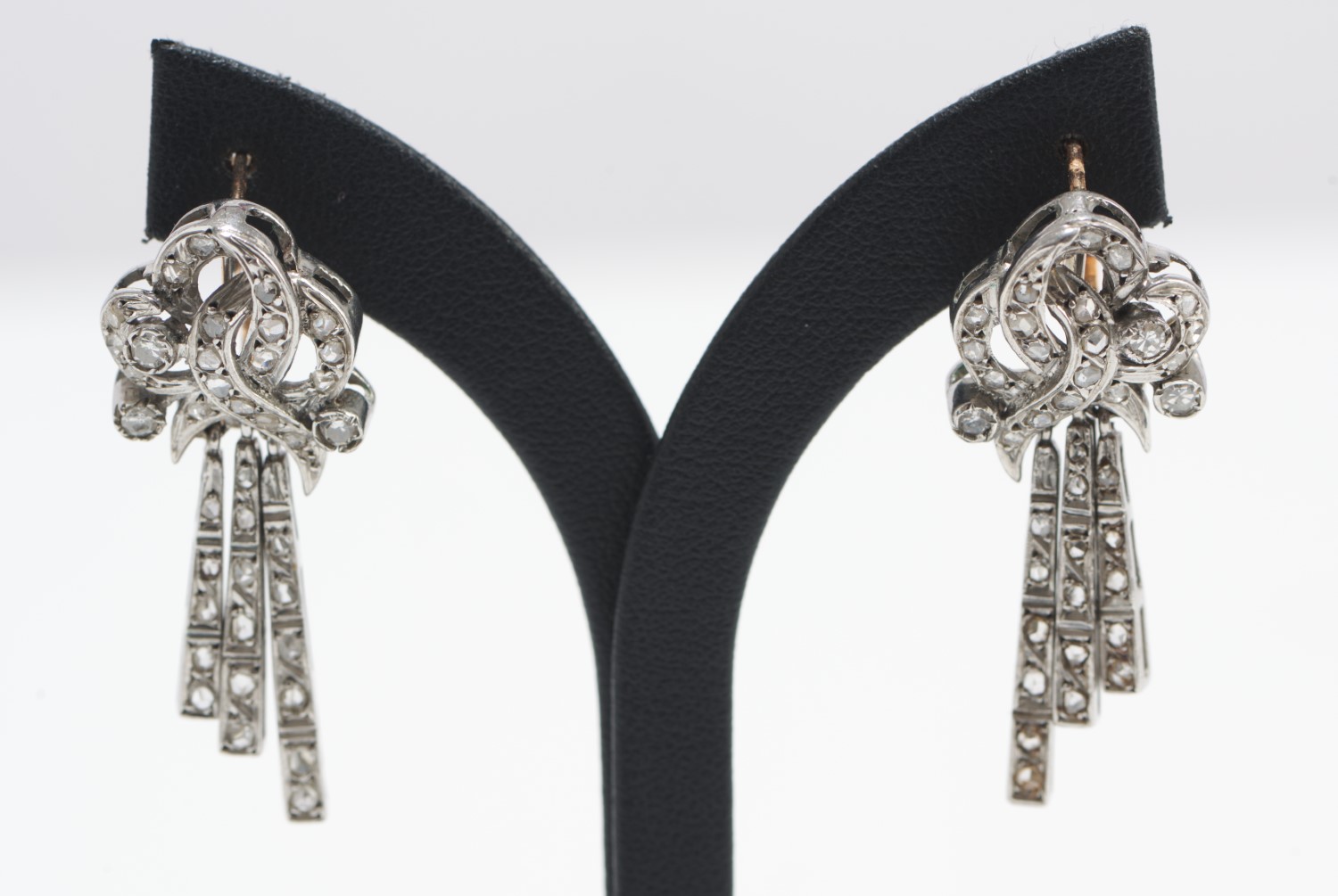 A PAIR OF DIAMOND STONE SET DROP EARRINGS CONTINENTAL FITTINGS IN 14CT SOVIET GOLD, HALLMARKED