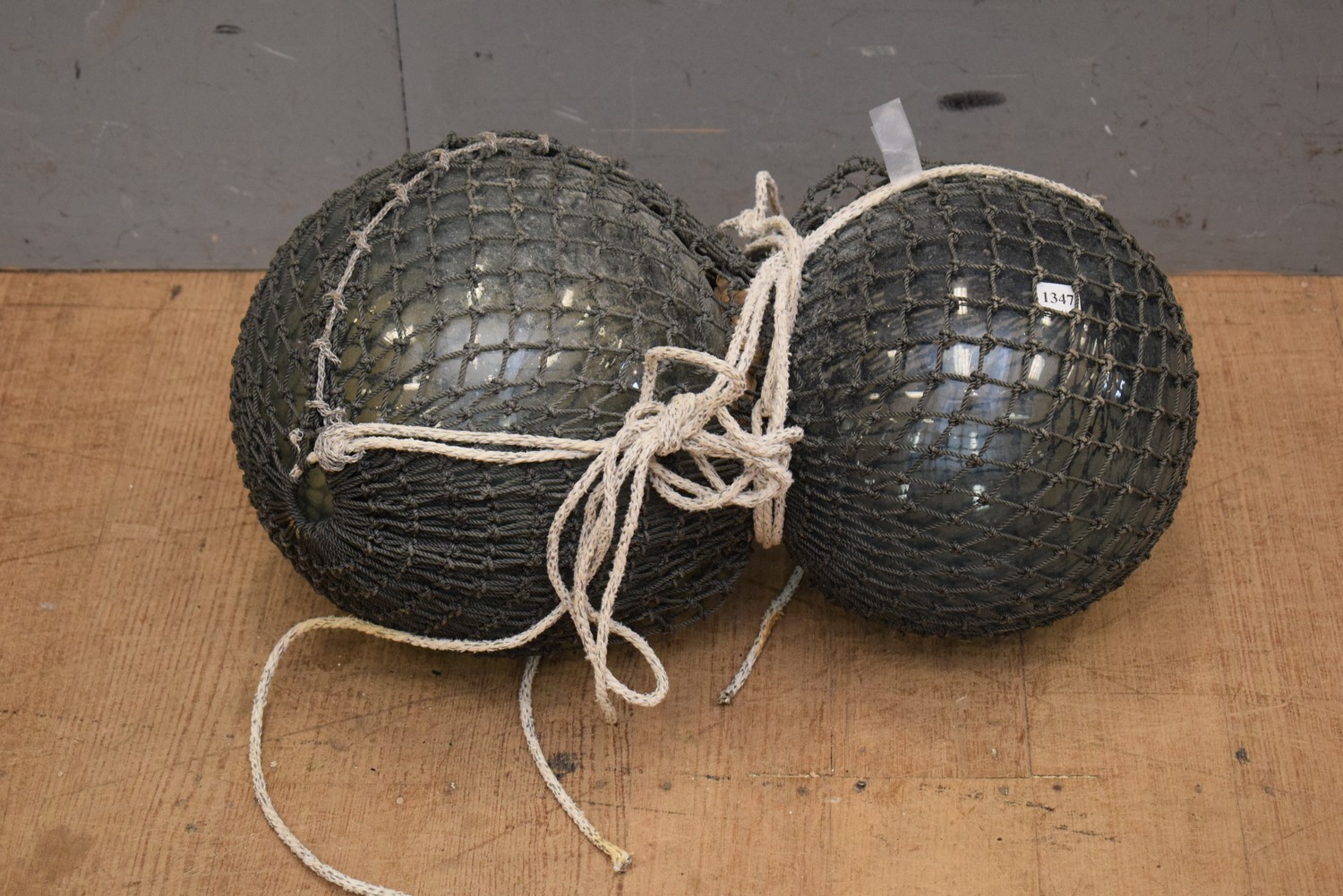 A LARGE 1920S FIBRE BOUND DOUBLE GLASS FISHING FLOAT BOY IN LIGHT GREEN GLASS ( 30 X 55 X 30 D CM ) (LEONARD JOEL DELIVERY SIZE: LARGE)
