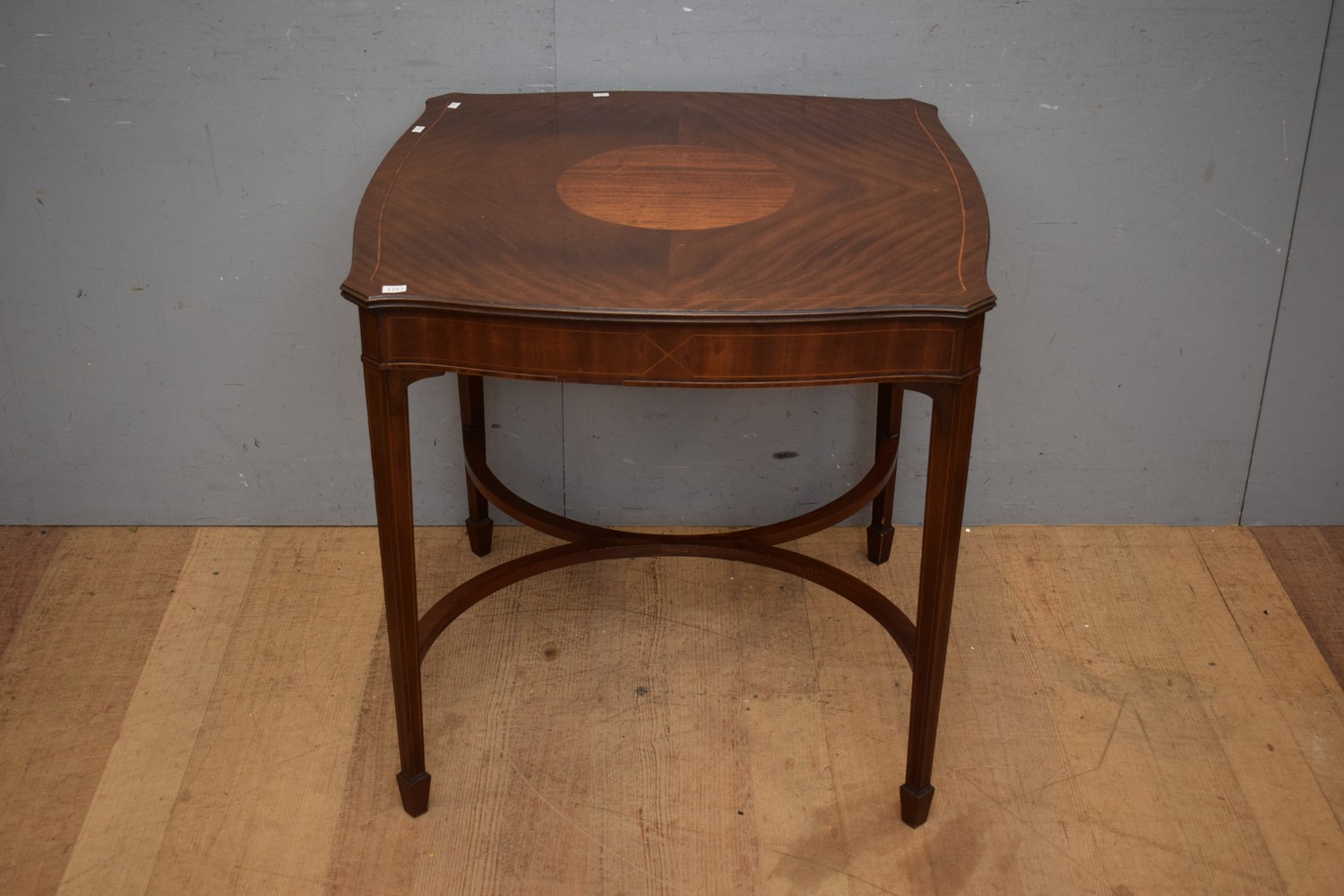 FINE 1900S ENGLISH INLAID MAHOGANY SQUARE FORM SIDE TABLE WITH LOWER SUPPORTS (75H x 77W x 77D CM) (LEONARD JOEL DELIVERY SIZE: LARGE)