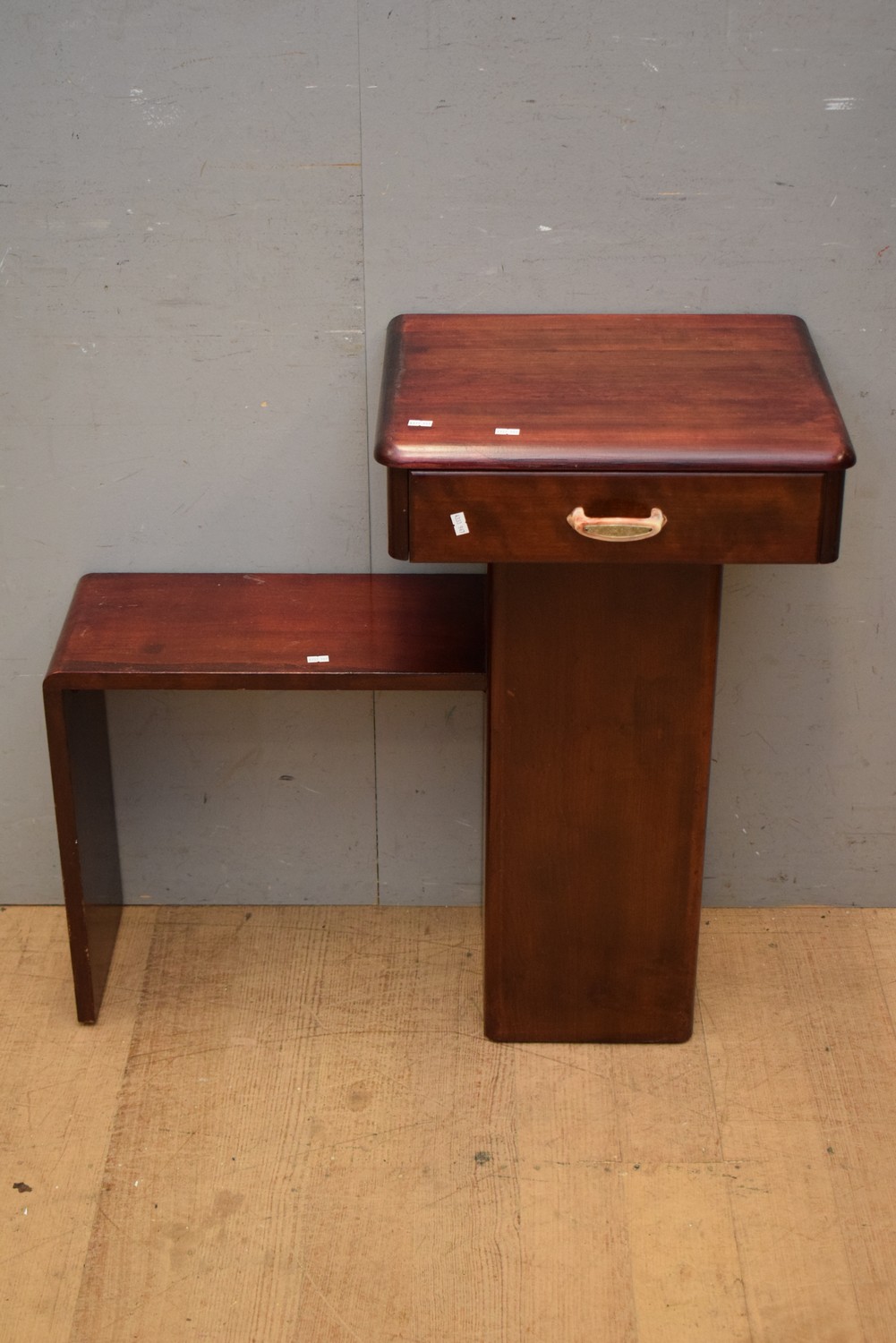 1940S ART DECO PEDESTAL FORM SIDE TABLE WITH SINGLE FOLD DOWN COMPARTMENT ( 76H X 80W X 39D CM) (LEONARD JOEL DELIVERY SIZE: LARGE)