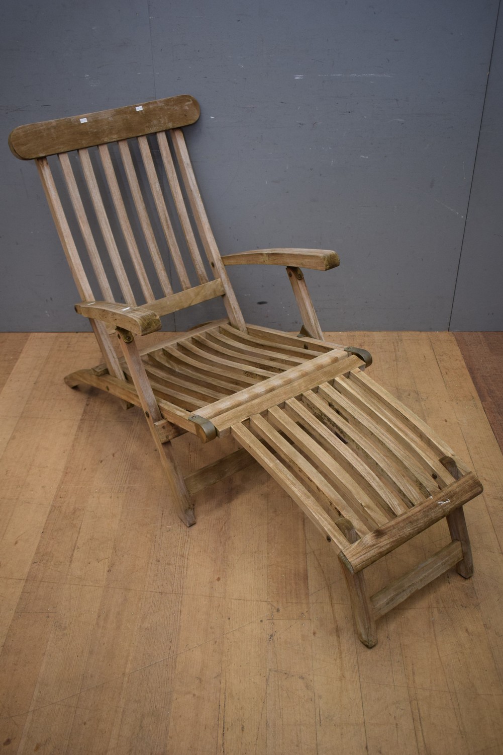 AN AUSTRALIAN MADE SOLID TEAK 'AUSSIE OUTDOOR' OUTDOOR FOLDING LOUNGE CHAIR WITH FOOT SUPPORT ( 93H X 66W X 152D CM) (LEONARD JOEL DELIVERY SIZE: LARGE)
