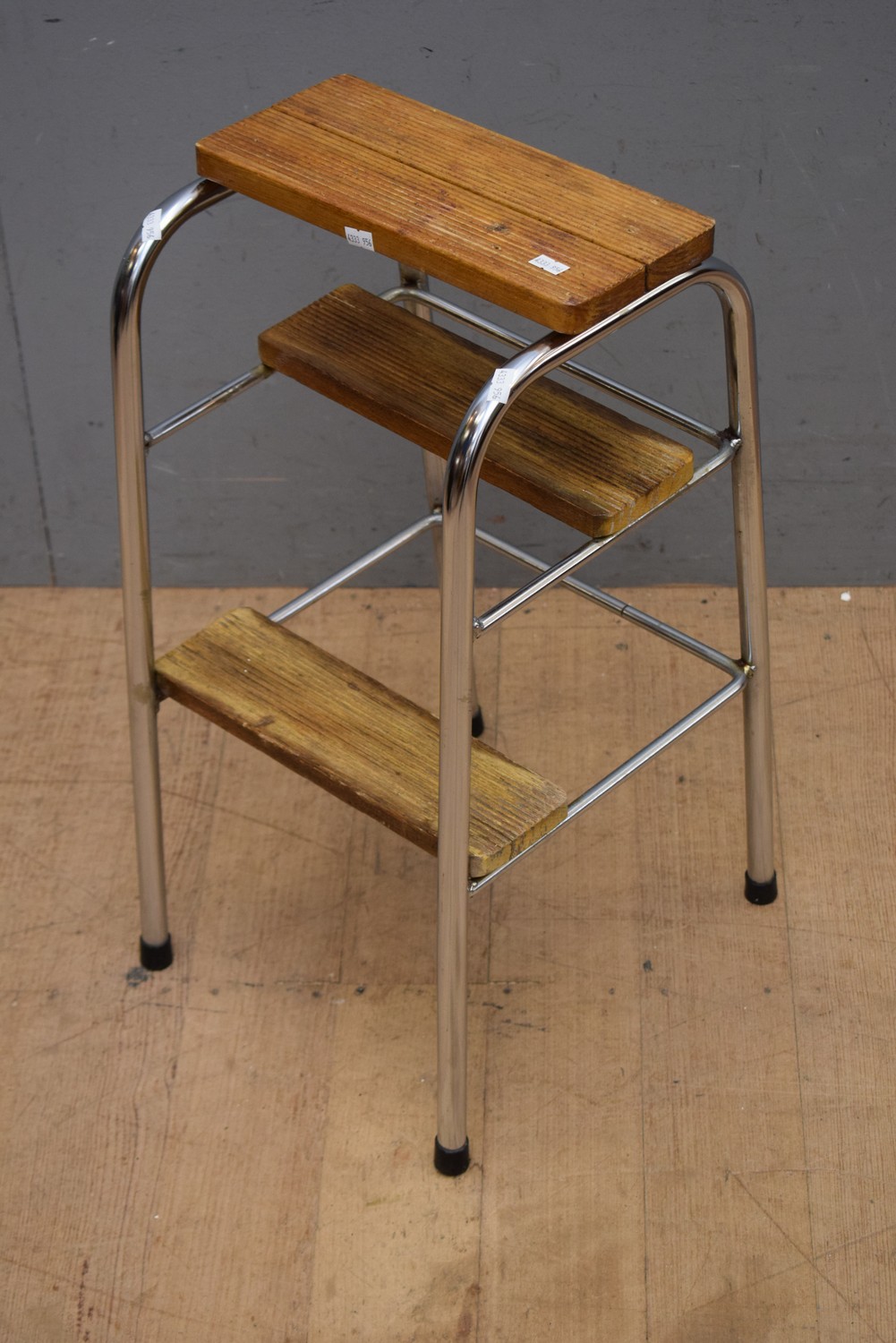A 1950S AUSTRALIAN MADE CHROME FRAMED FOLDING STEP LADDER ( 60H X 36W X 30D CM) (LEONARD JOEL DELIVERY SIZE: LARGE)