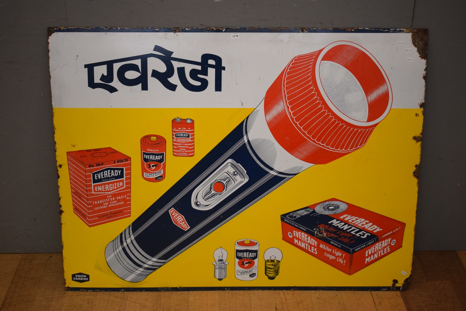 A LARGE ENAMEL EVEREADY BATTERY GLOBE TORCH AND MANTLE ADVERTISING SIGN (92H x 123W CM) (LEONARD JOEL DELIVERY SIZE: LARGE)
