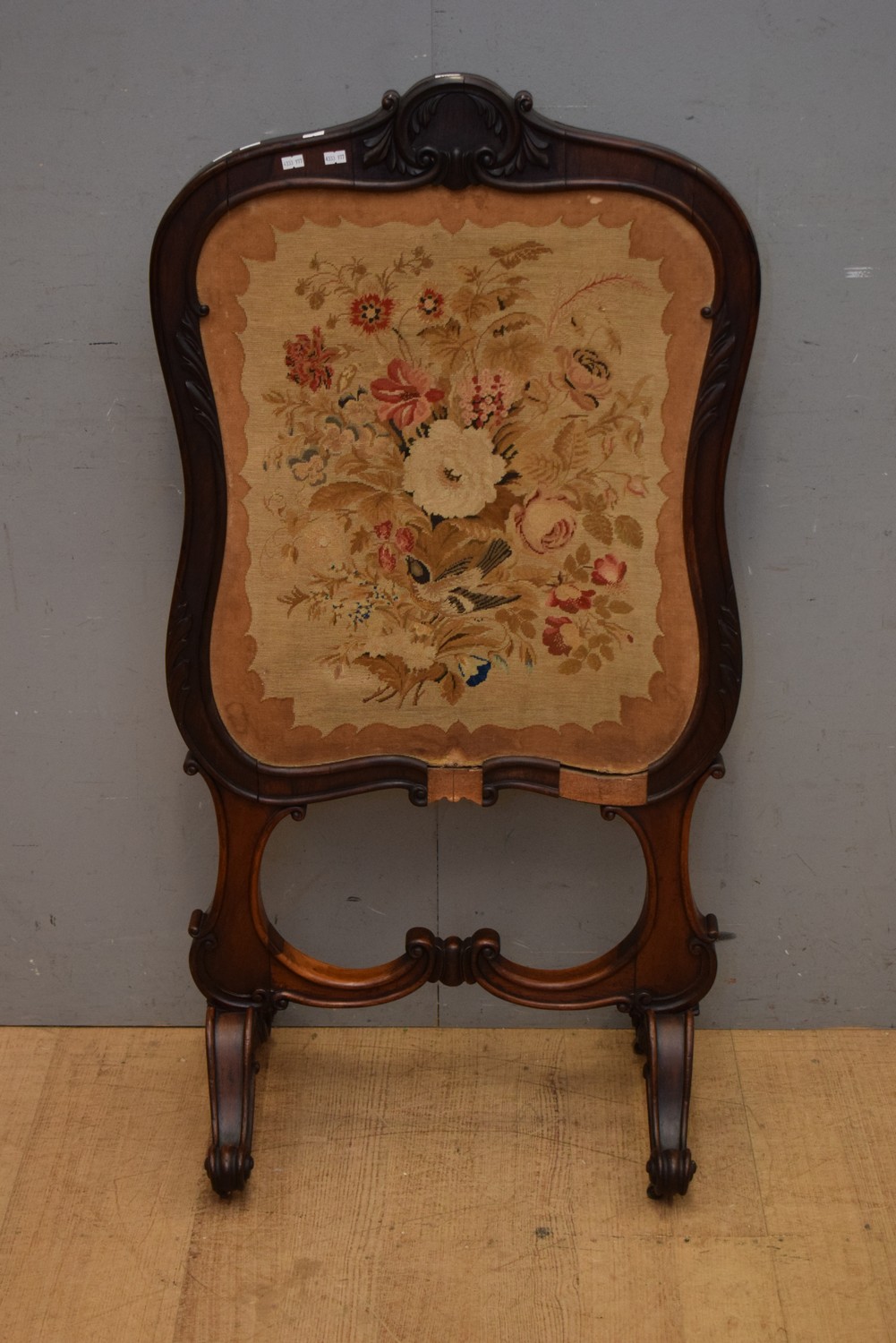 EARLY VICTORIAN ROSEWOOD FRAMED DOUBLE SIDED TAPESTRY FIRE SCREEN (A/F) (123H x 64W x 43D CM) (LEONARD JOEL DELIVERY SIZE: LARGE)