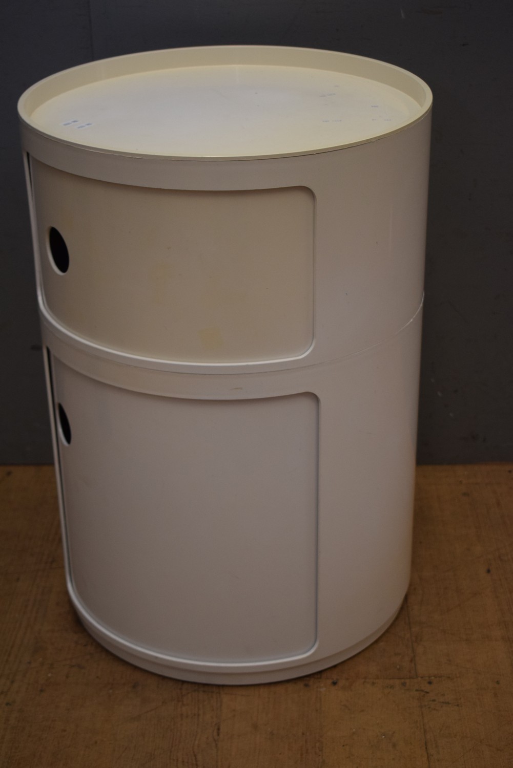 A RETRO KARTELL TWO TIER DISPLAY CABINET IN CLEAN WHITE ( 60H X 42 DIAMETER CM) (LEONARD JOEL DELIVERY SIZE: LARGE)