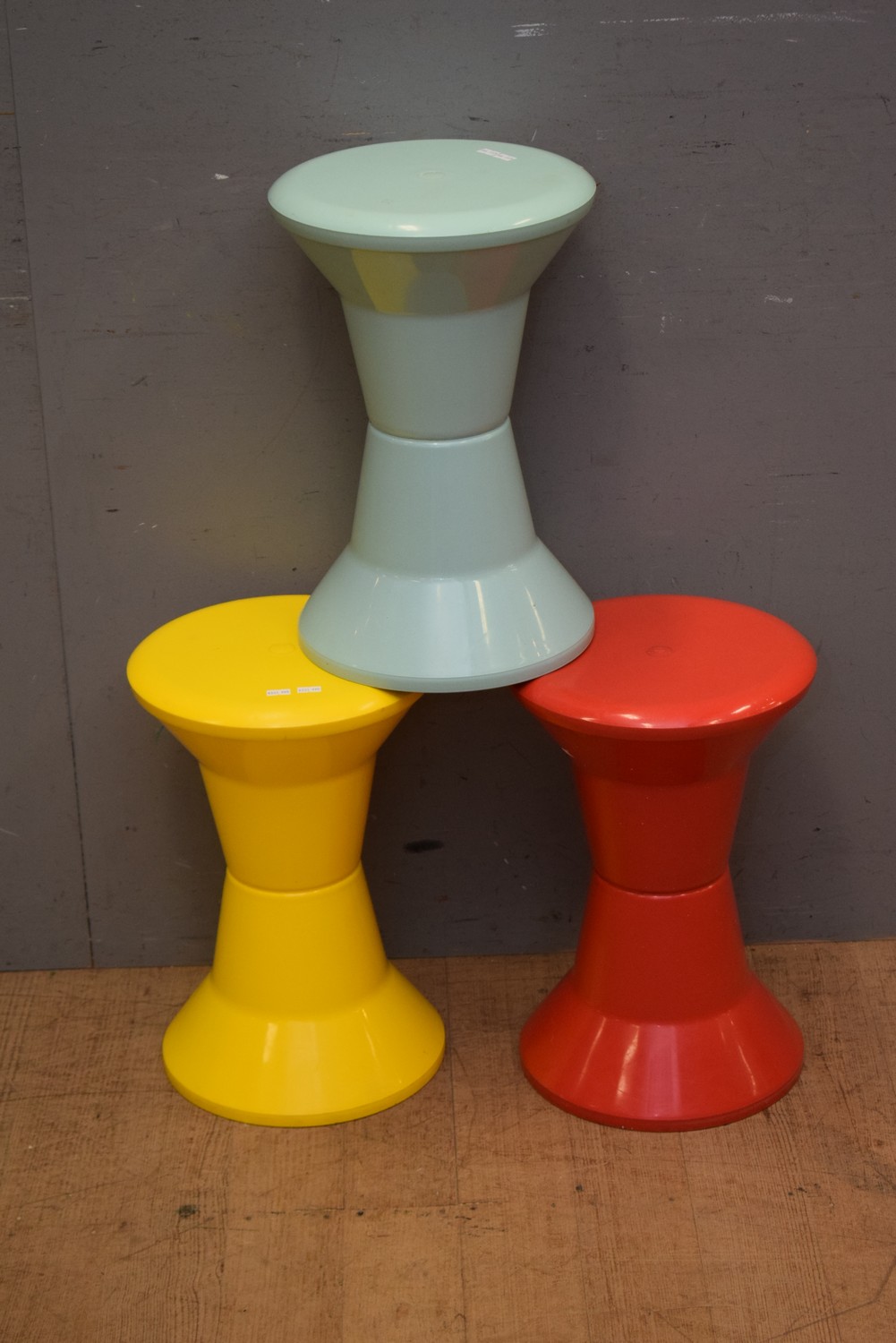 GROUP OF 3 1970S CAROMA MULTI COLOURED RETRO PLASTIC STOOLS (43H x 30D CM) (LEONARD JOEL DELIVERY SIZE: MEDIUM)