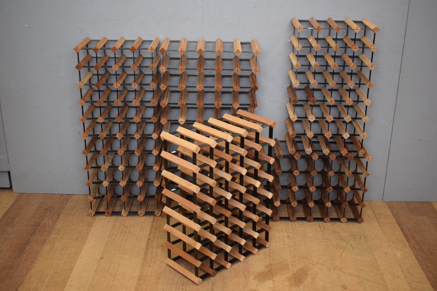 GROUP OF 5 WOODEN AND STEEL WINE DISPLAY RACKS (WILL CARRY OVER 200 BOTTLES) (100H x 42W x 24D CM) (LEONARD JOEL DELIVERY SIZE: LARGE)