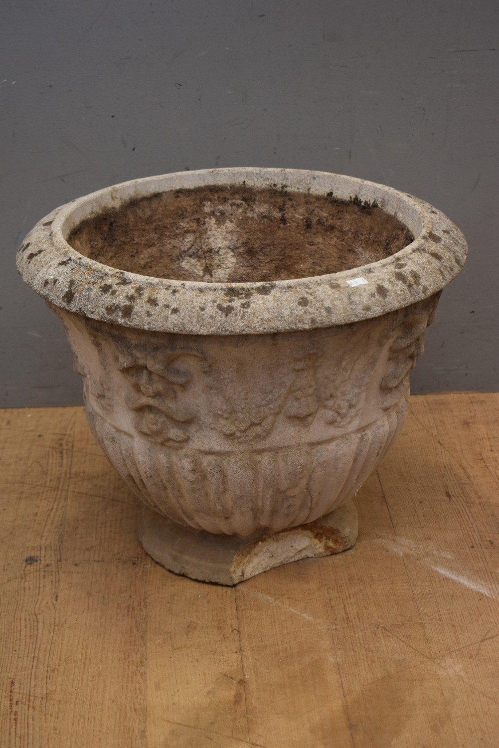 A SUBSTANTIAL CONCRETE PLANTER (A/F) (H43 X D55 CM) (PLEASE NOTE THIS HEAVY ITEM MUST BE REMOVED BY CARRIERS AT THE CUSTOMER'S EXPENSE. LEONARD JOEL STAFF CANNOT ASSIST CARRYING THIS ITEM) (X-LARGE ITEM)
