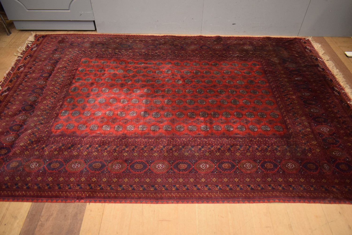 A PURE WOOL ON WOOL AFGHAN TURKOMAN IN PRINCESS BOKHARA DESIGN (A/F) (315 x 200 CM) (LEONARD JOEL DELIVERY SIZE: LARGE)