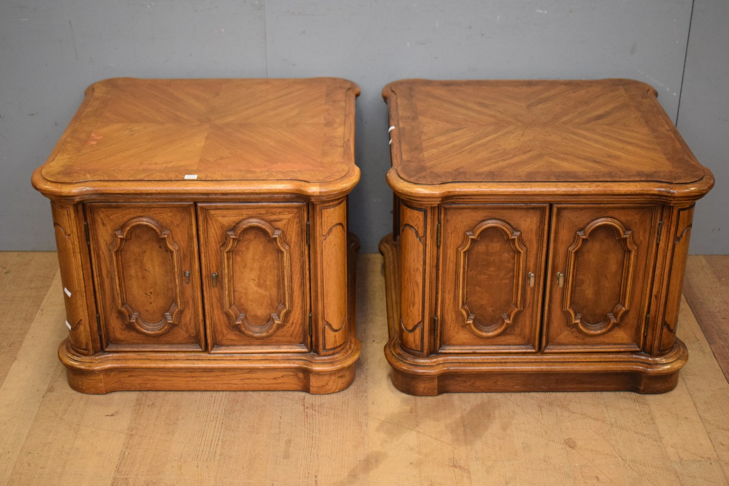 A PAIR OF AMERICAN BURWOOD BEDSIDE CABINETS (A/F) (53H x 72W x 72D CM) (PLEASE NOTE THIS HEAVY ITEM MUST BE REMOVED BY CARRIERS AT THE CUSTOMER'S EXPENSE. LEONARD JOEL STAFF CANNOT ASSIST CARRYING THIS ITEM) (X-LARGE ITEM)
