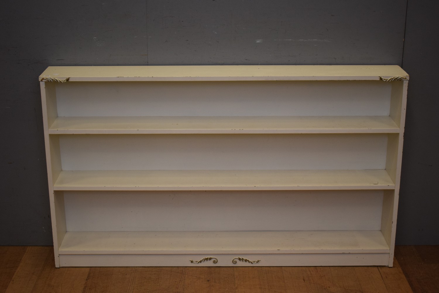 A WHITE PAINTED BOOKCASE (A/F) (87H x 151W x 22D CM) (LEONARD JOEL DELIVERY SIZE: LARGE)