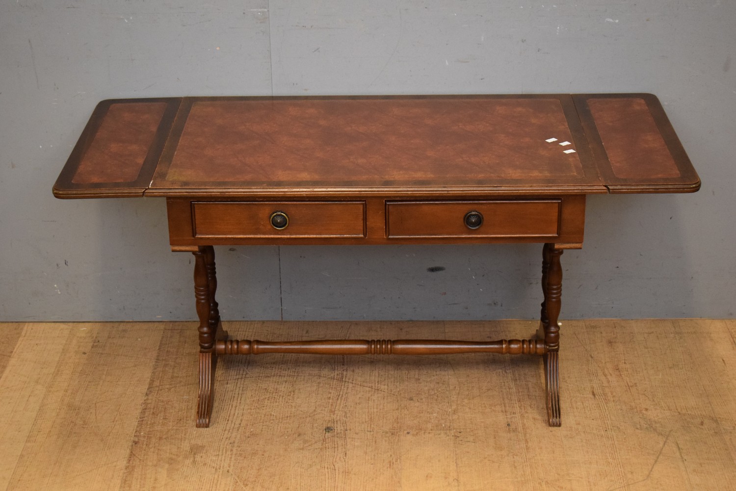 A REGENCY STYLE DROPSIDE TABLE WITH LEATHER INSERT 56H x 118W x 51D CM) (LEONARD JOEL DELIVERY SIZE: LARGE)