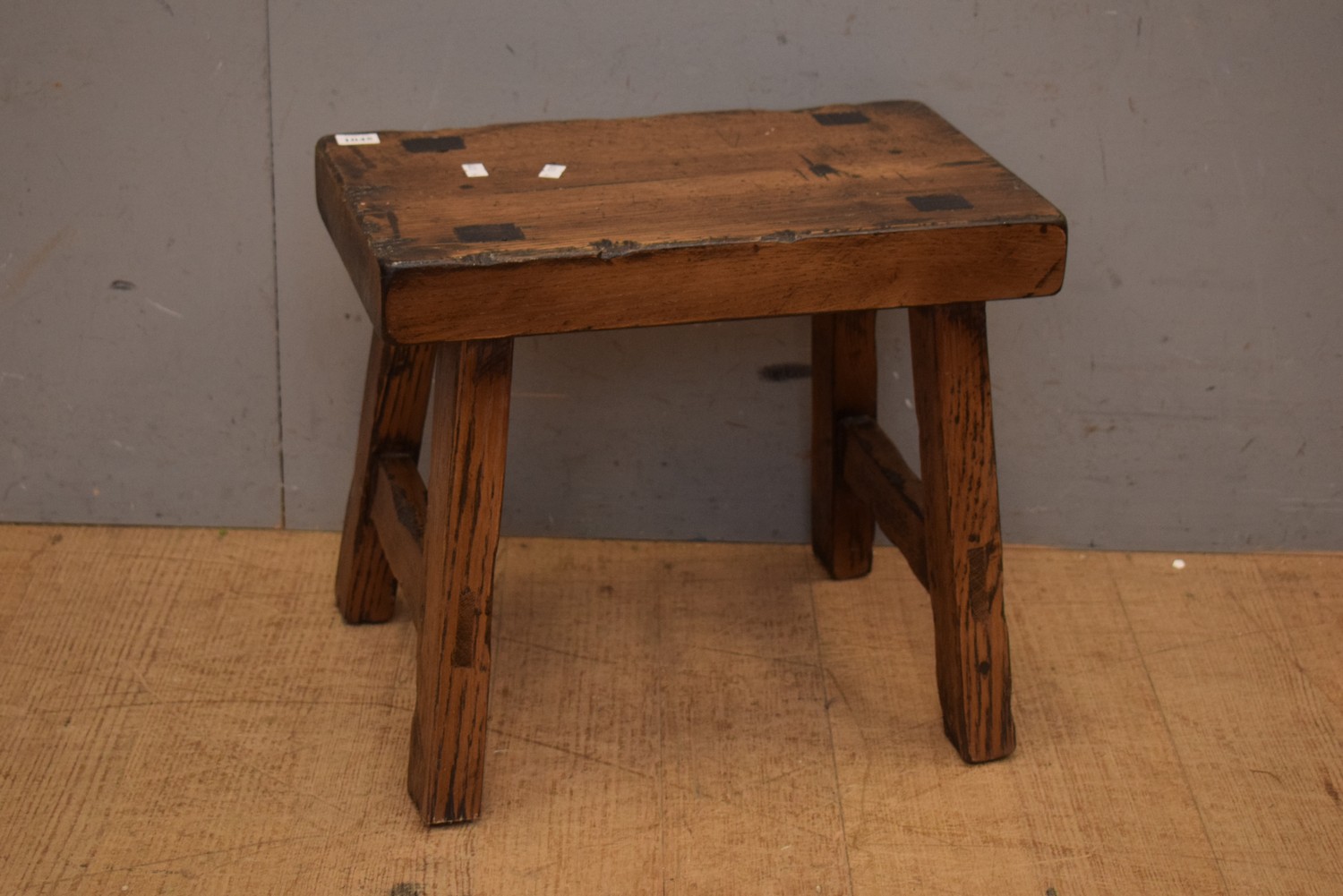 A FRENCH STYLE OAK MILKING STOOL (34H x 40W x 27D CM) (LEONARD JOEL DELIVERY SIZE: MEDIUM)