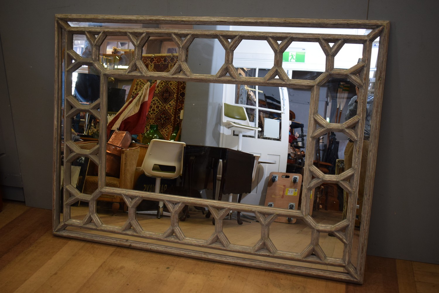A SPANISH STYLE OCTAGONAL MOULDED MIRROR IN SILVER LEAF (142H x 195W CM) (PLEASE NOTE THIS HEAVY ITEM MUST BE REMOVED BY CARRIERS AT THE CUSTOMER'S EXPENSE. LEONARD JOEL STAFF CANNOT ASSIST CARRYING THIS ITEM) (X-LARGE ITEM)
