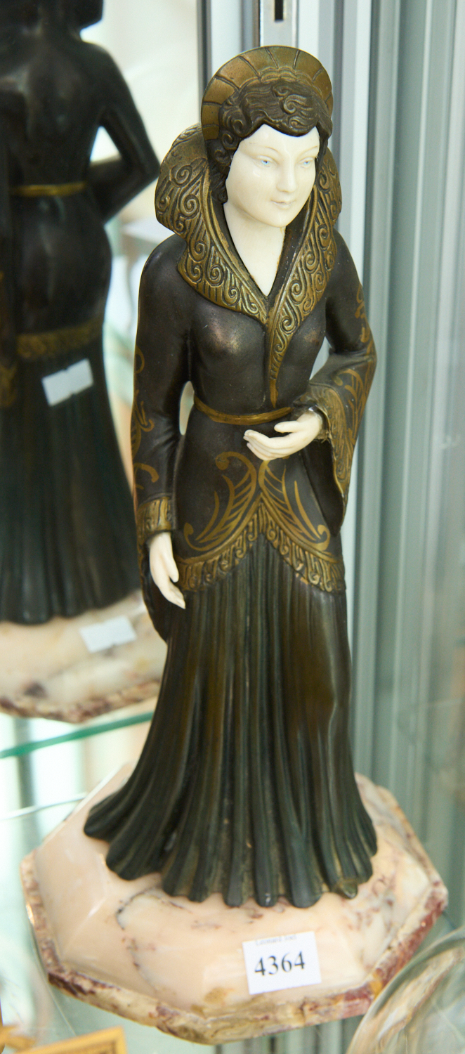 A FRENCH ART DECO METAL AND IVORINE FIGURE (33 CM H), LEONARD JOEL LOCAL DELIVERY SIZE: SMALL