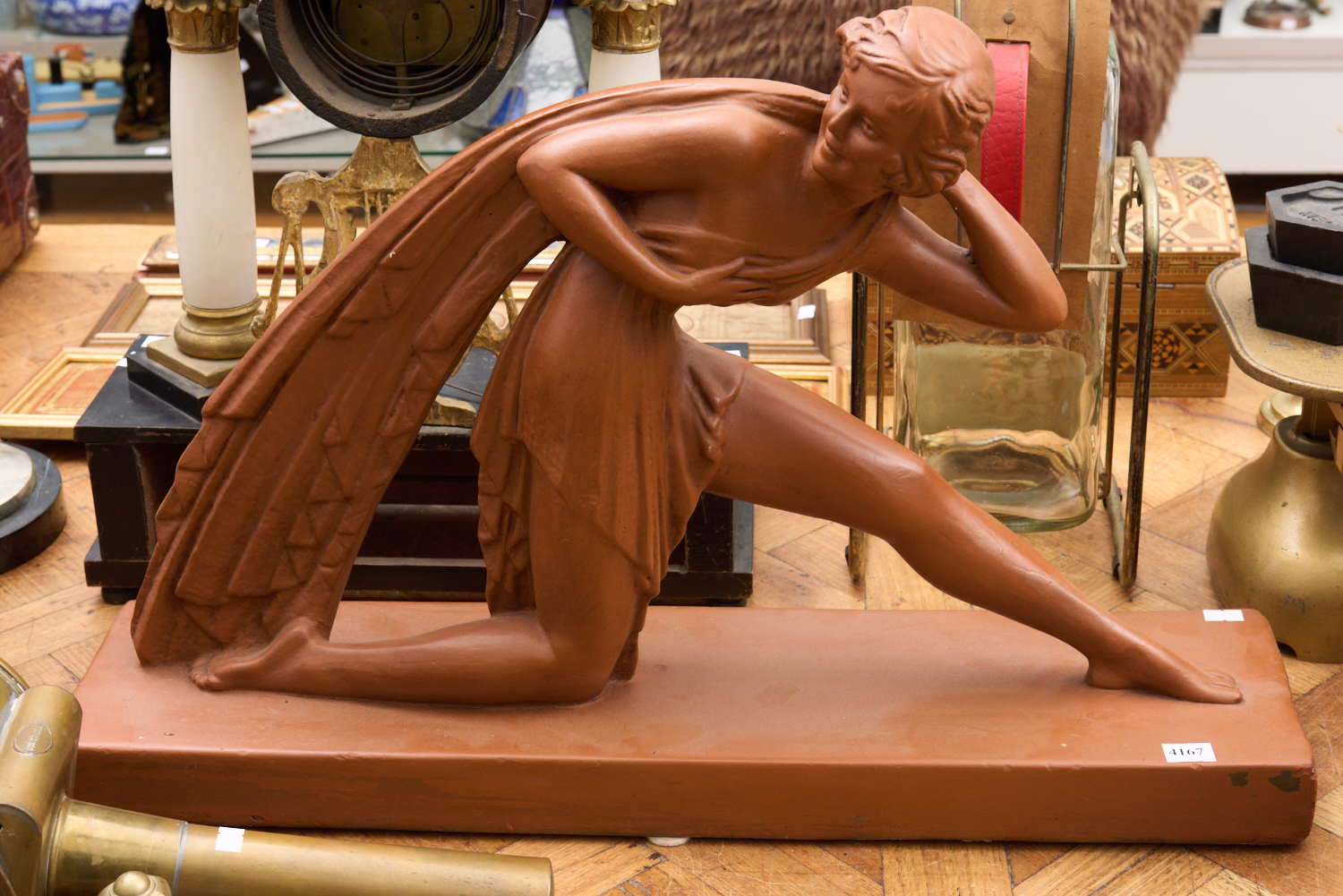 A CHIPARUS TERRACOTTA STYLE ART DECO FIGURE (67 CM W), LEONARD JOEL LOCAL DELIVERY SIZE: SMALL
