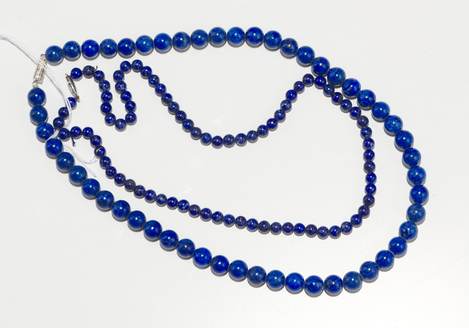 TWO STRANDS OF LAPIS LAZULI BEADS