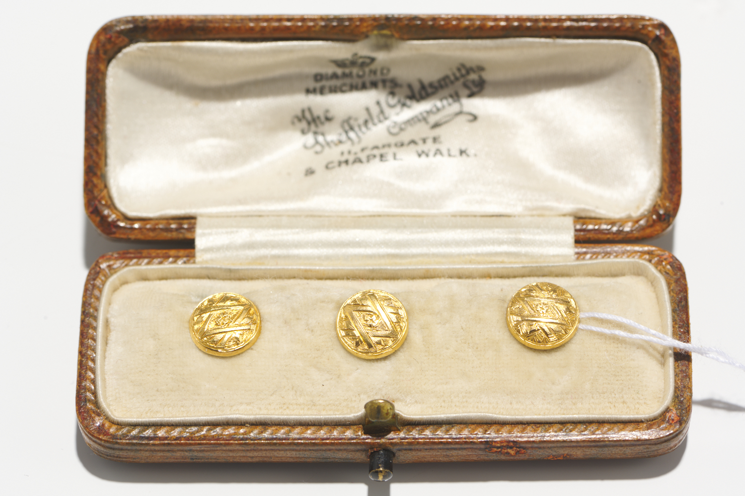 A SET OF THREE GOLD LINED SHIRT STUDS