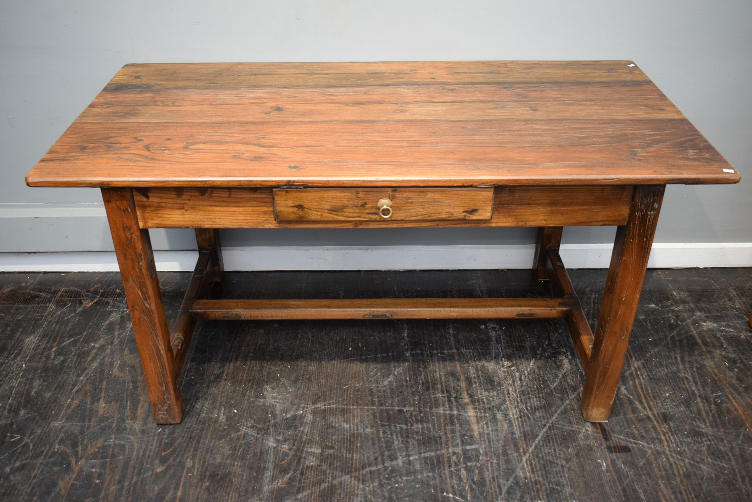 A SUBSTANTIAL TWO DRAWER DESK WITH STRETCHER BASE (A/F) (90H x 160W x 80D CM) (PLEASE NOTE THIS HEAVY ITEM MUST BE REMOVED BY CARRIERS AT THE CUSTOMER'S EXPENSE. LEONARD JOEL STAFF CANNOT ASSIST CARRYING THIS ITEM) (X-LARGE ITEM)