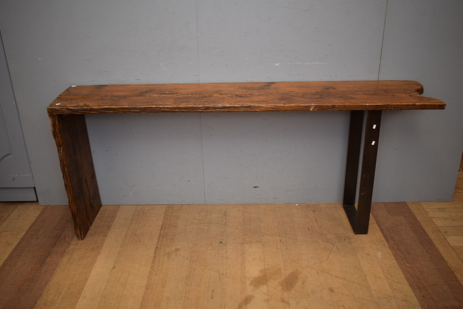 A RUSTIC RECLAIMED TIMBER CONSOLE (87H x 215W x 42D CM) (PLEASE NOTE THIS HEAVY ITEM MUST BE REMOVED BY CARRIERS AT THE CUSTOMER'S EXPENSE. LEONARD JOEL STAFF CANNOT ASSIST CARRYING THIS ITEM) (X-LARGE ITEM)