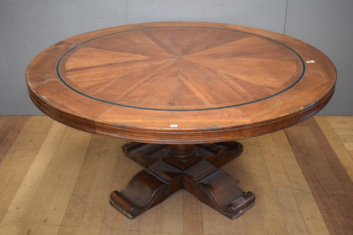 A SUBSTANTIAL CIRCULAR OAK DINING TABLE (77H x 159D CM) (PLEASE NOTE THIS HEAVY ITEM MUST BE REMOVED BY CARRIERS AT THE CUSTOMER'S EXPENSE. LEONARD JOEL STAFF CANNOT ASSIST CARRYING THIS ITEM) (X-LARGE ITEM)