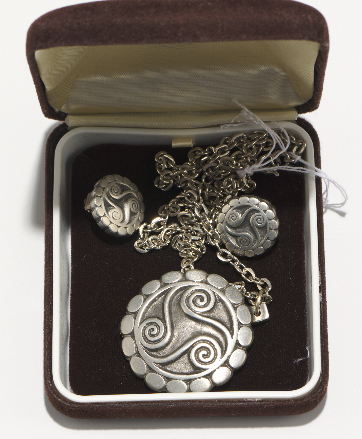 A PENDANT ON CHAIN BY JORGEN JENSEN WITH A MATCHING PAIR OF CLIP EARRINGS