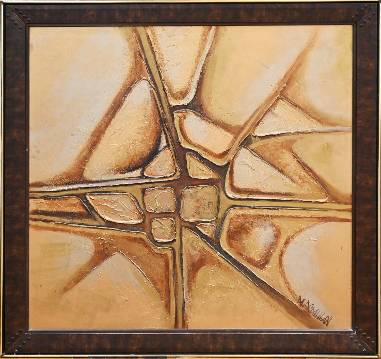 SIGNED MACMILLAN, ABSTRACT, OIL ON CANVAS, 106 X 106CM, FRAME: 124 X 124CM