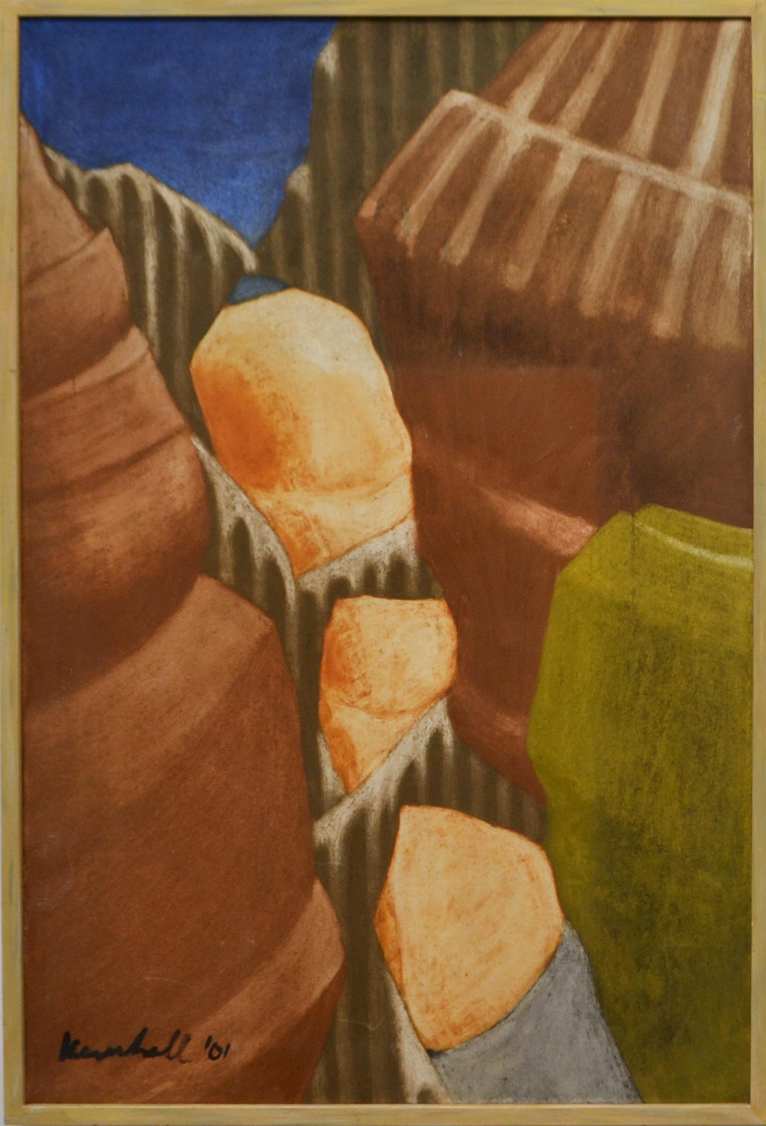 SIGNED KEMHALL, ABSTRACT ROCKS, OIL ON CANVAS, 111 X 76CM