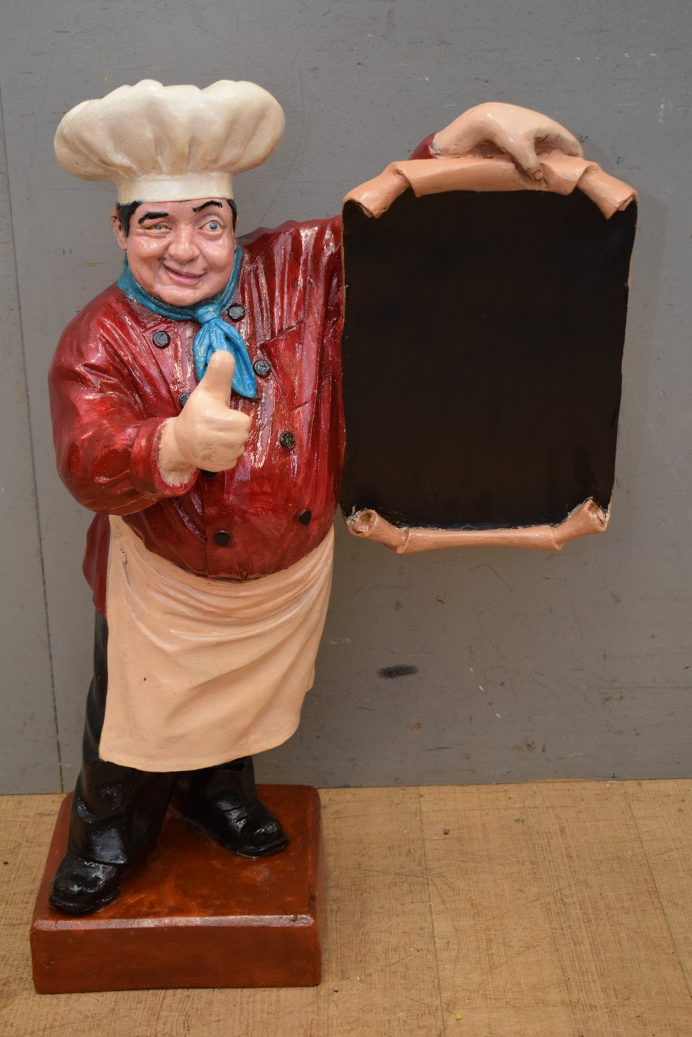 A FIBREGLASS CHEF ADVERTISING SIGN ( 76H X 52W X 29D CM) (LEONARD JOEL DELIVERY SIZE: MEDIUM)