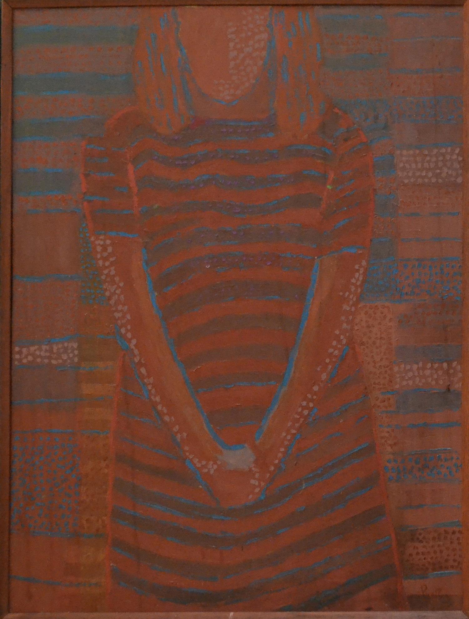 CHRISTOPHER PYETT, GIRL WITH HER STRIPED DRESS, OIL ON CANVAS, 91 X 68CM, LEONARD JOEL DELIVERY SIZE: MEDIUM