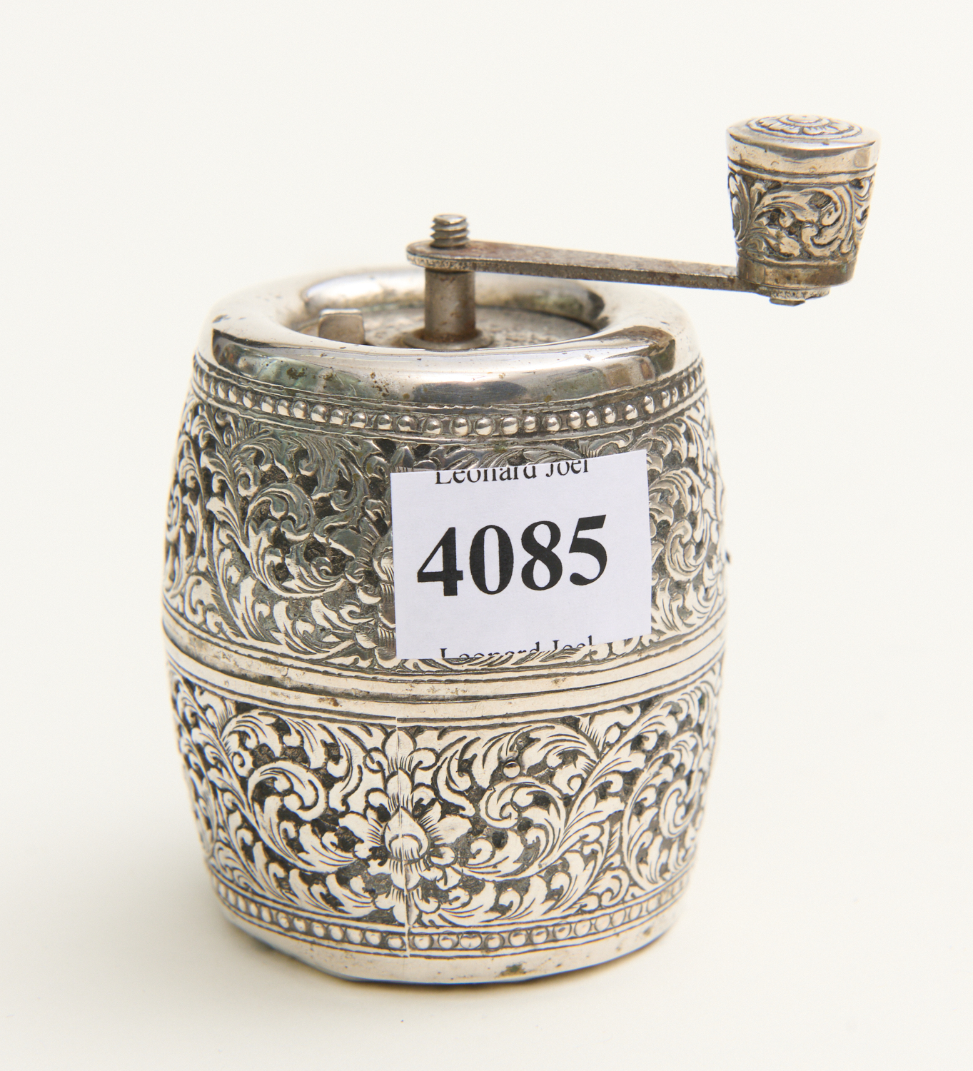 A FRENCH EMBOSSED SILVER PEPPER MILL H.6CM, LEONARD JOEL LOCAL DELIVERY SIZE: SMALL