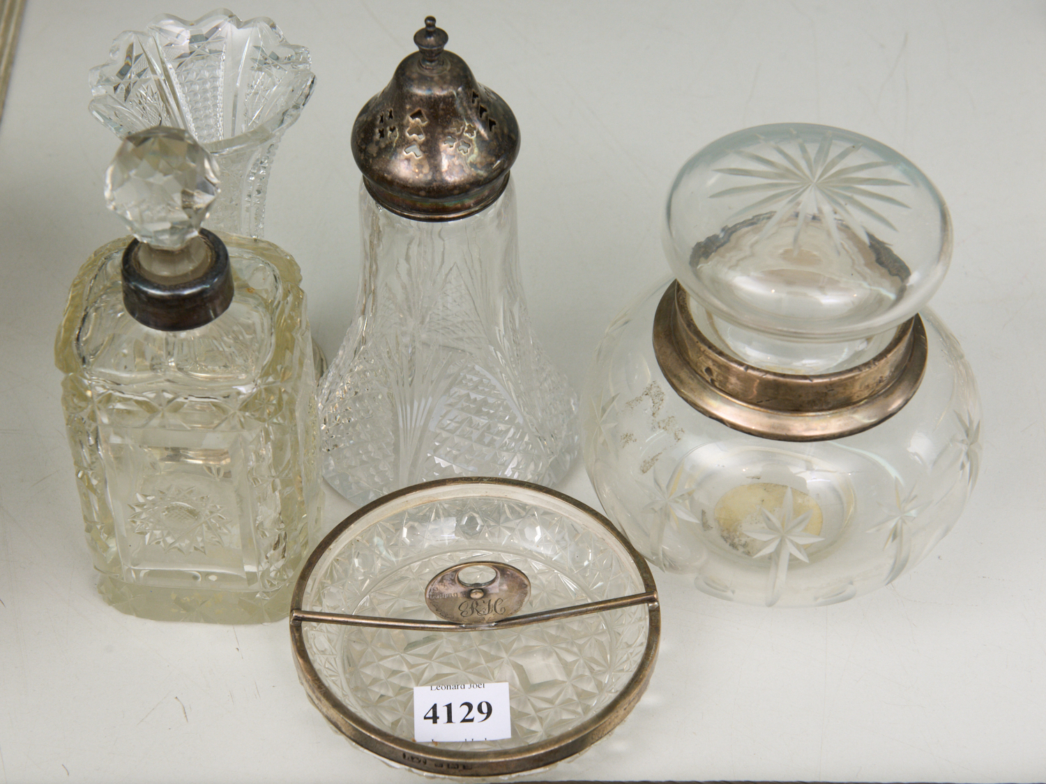 A GROUP OF SILVER TOPPED CRYSTAL ITEMS, LEONARD JOEL LOCAL DELIVERY SIZE: SMALL
