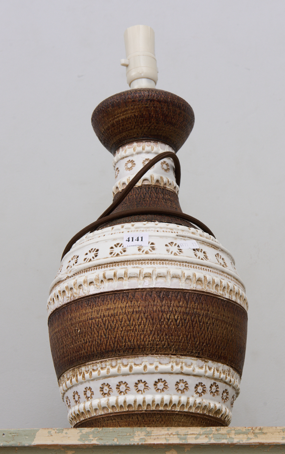 AN ITALIAN BITOSSI CREAM AND BROWN GLAZED LAMP H.52CM, LEONARD JOEL LOCAL DELIVERY SIZE: SMALL