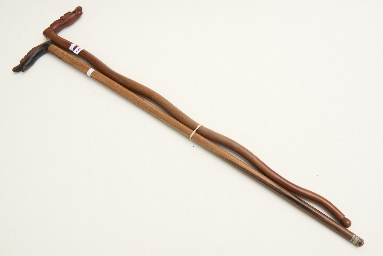 TWO VINTAGE DRAGON HANDLE WALKING STICKS INCLUDING ONE MADE OF SOLID ROSEWOOD H.89CM, LEONARD JOEL LOCAL DELIVERY SIZE: SMALL
