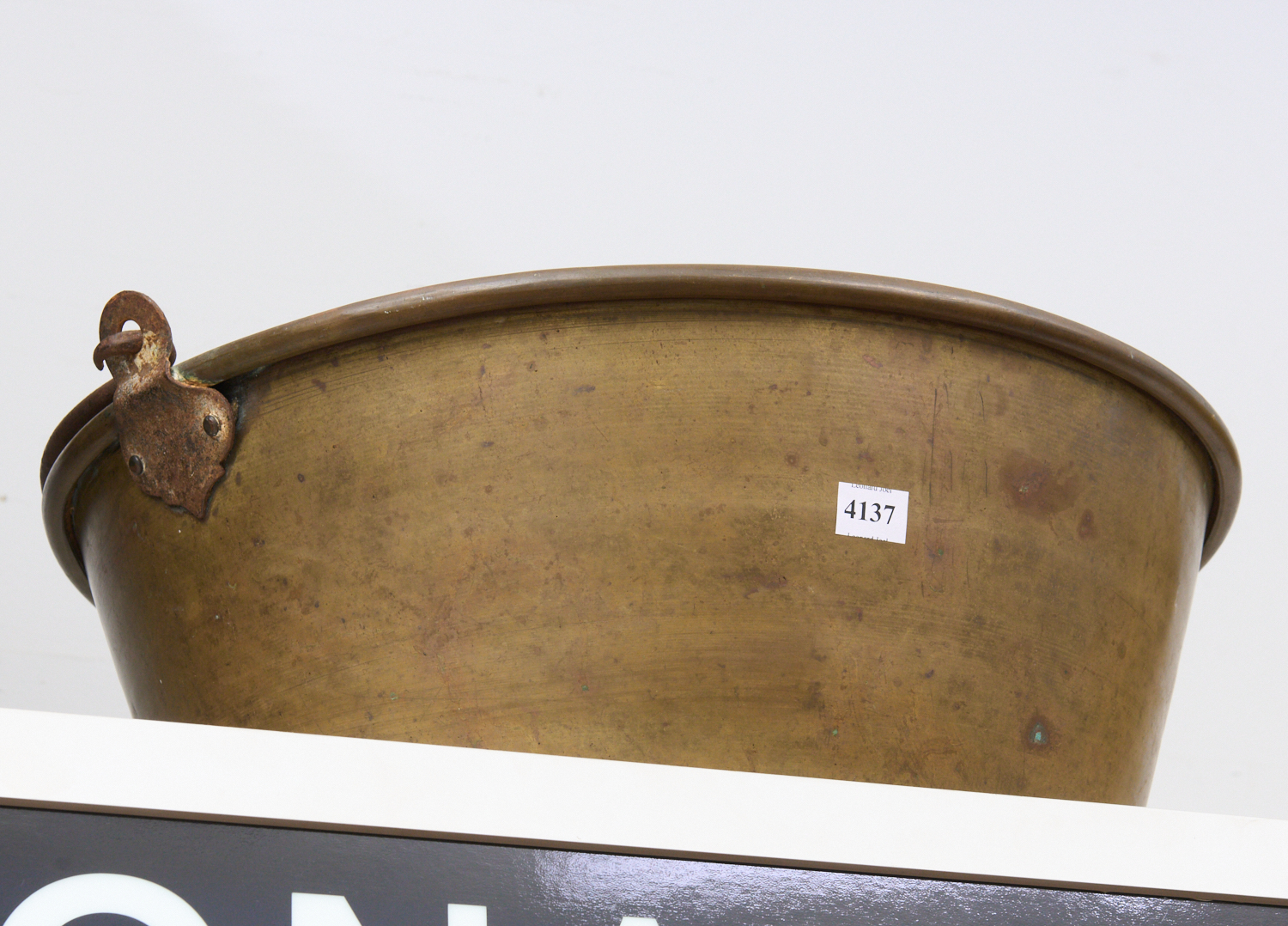 A COPPER JAM PAN WITH ORIGINAL CAST-IRON SWING HANDLE DIA.43CM, LEONARD JOEL LOCAL DELIVERY SIZE: SMALL