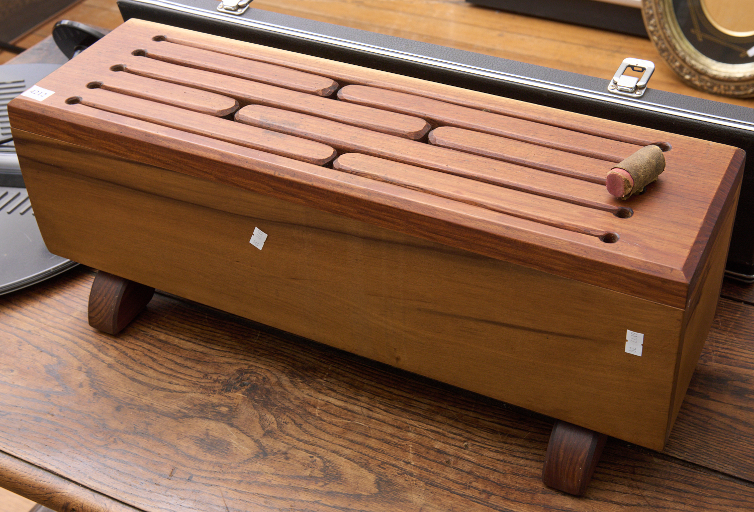 A VINTAGE AUSTRALIAN MADE TONGUE DRUM PERCUSSION INSTRUMENT (POSSIBLY TASMANIAN SASSAFRAS) W.60CM, LEONARD JOEL LOCAL DELIVERY SIZE: SMALL