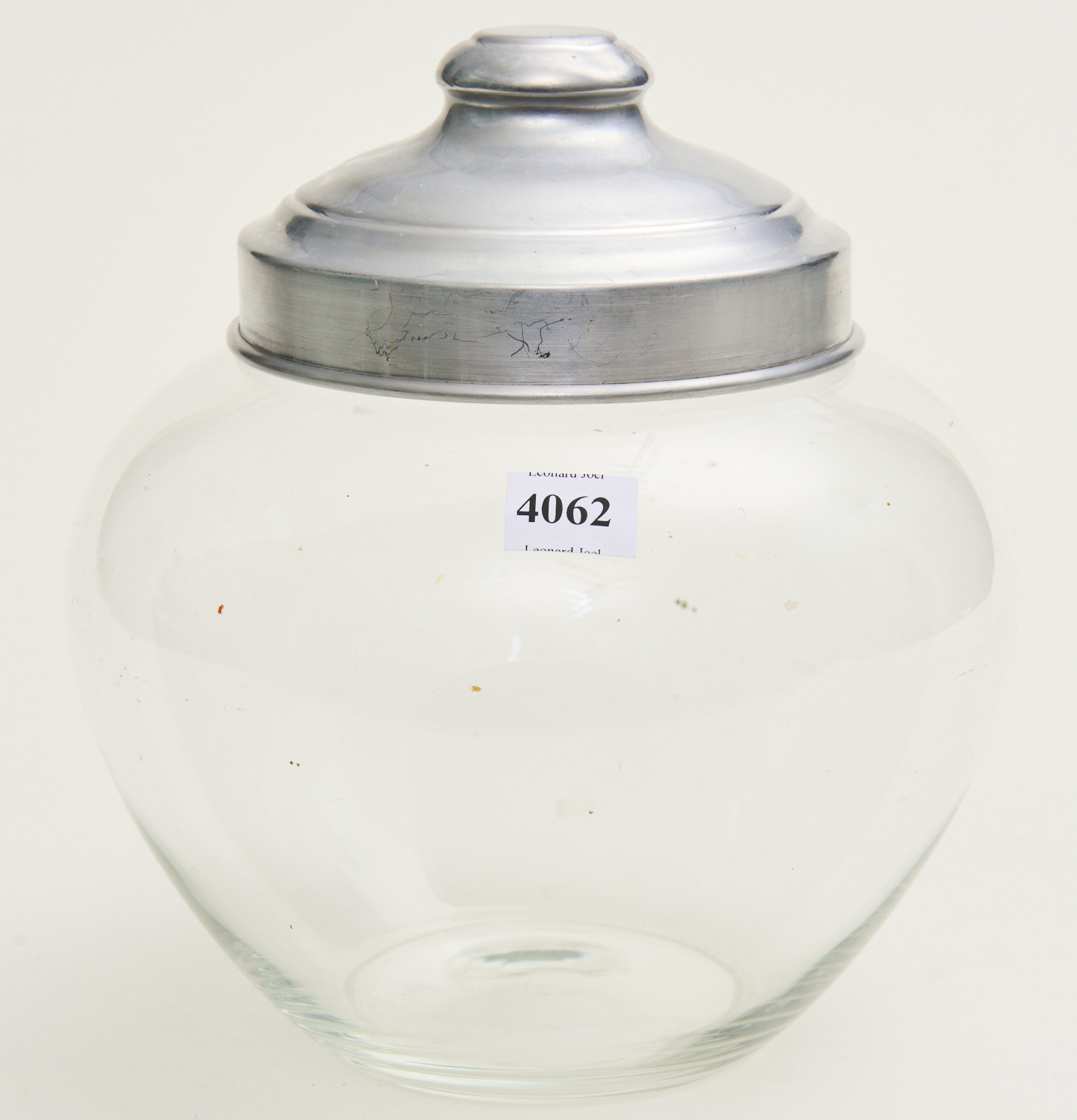 A VINTAGE GLASS BISCUIT BARREL H.24CM, LEONARD JOEL LOCAL DELIVERY SIZE: SMALL