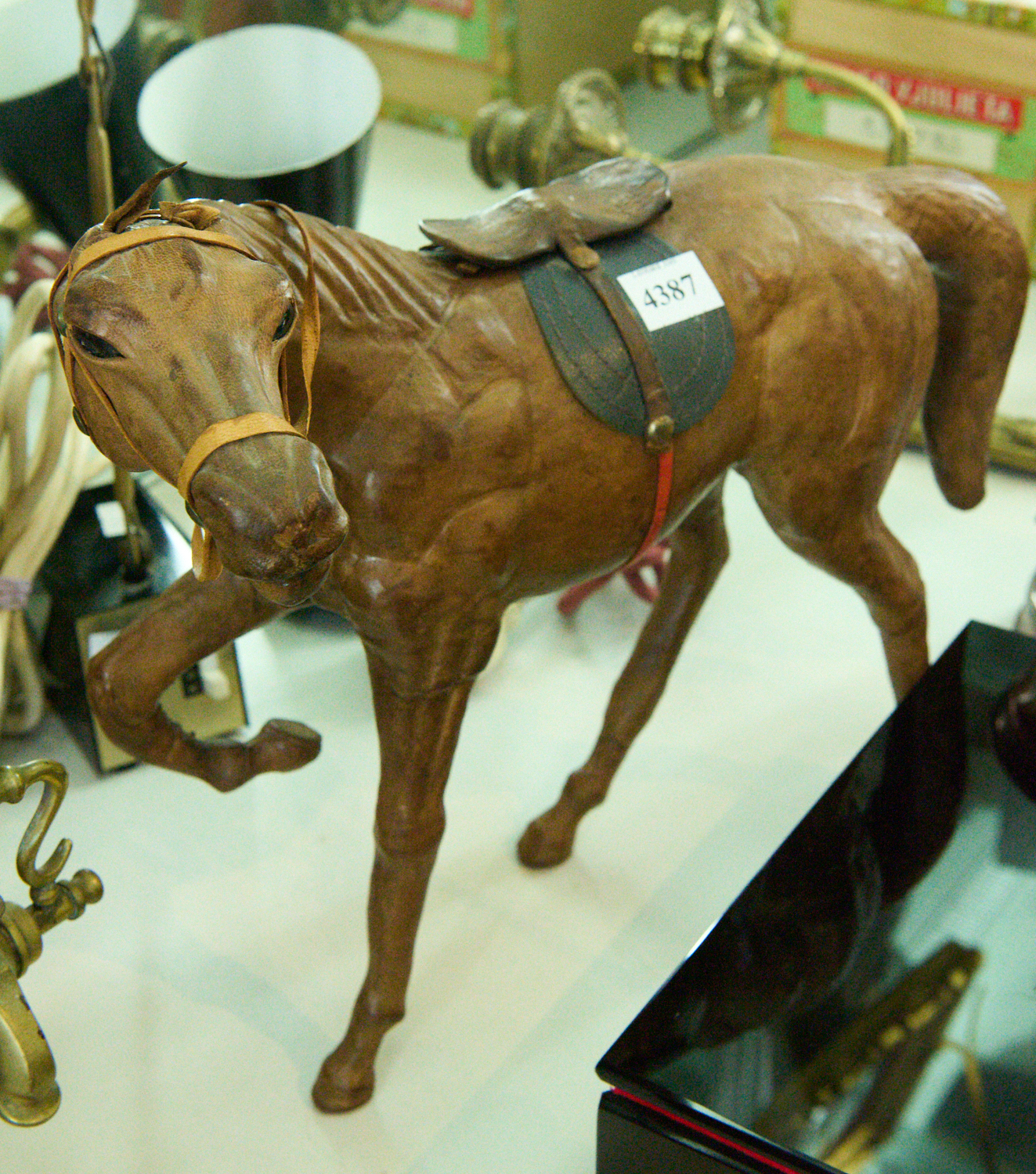 A LEATHER COVERED HORSE FIGURE H.28CM, LEONARD JOEL LOCAL DELIVERY SIZE: SMALL