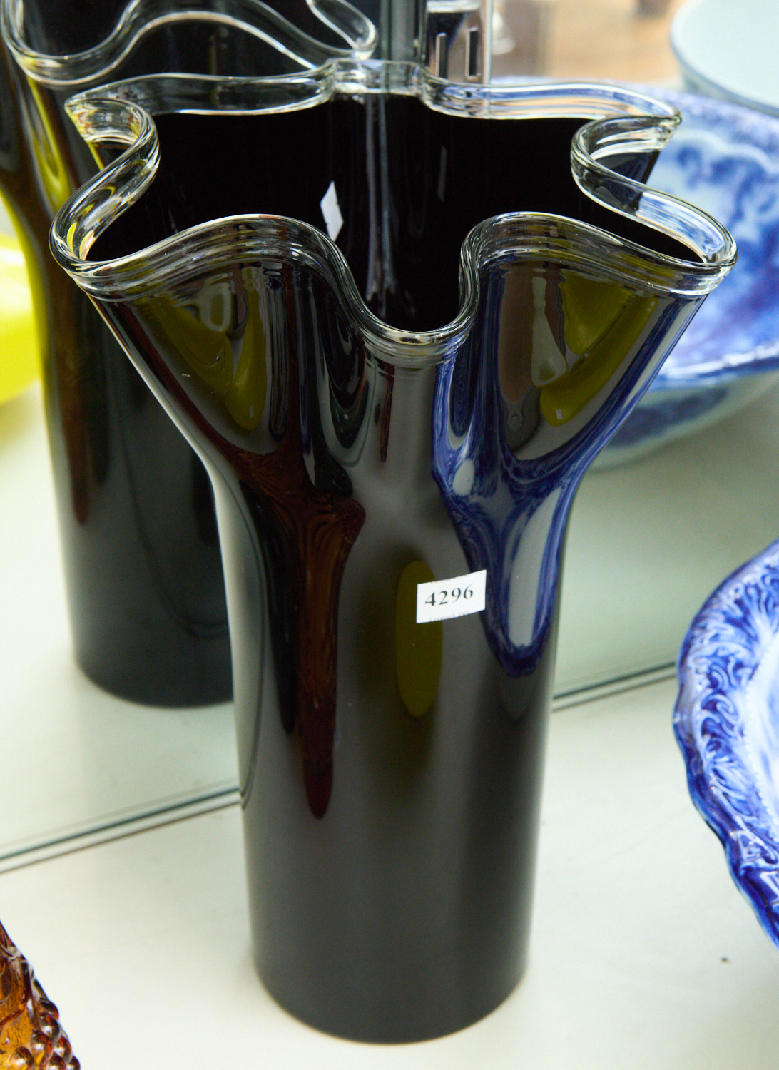 A BLACK AND CLEAR GLASS VASE H.36CM, LEONARD JOEL LOCAL DELIVERY SIZE: SMALL