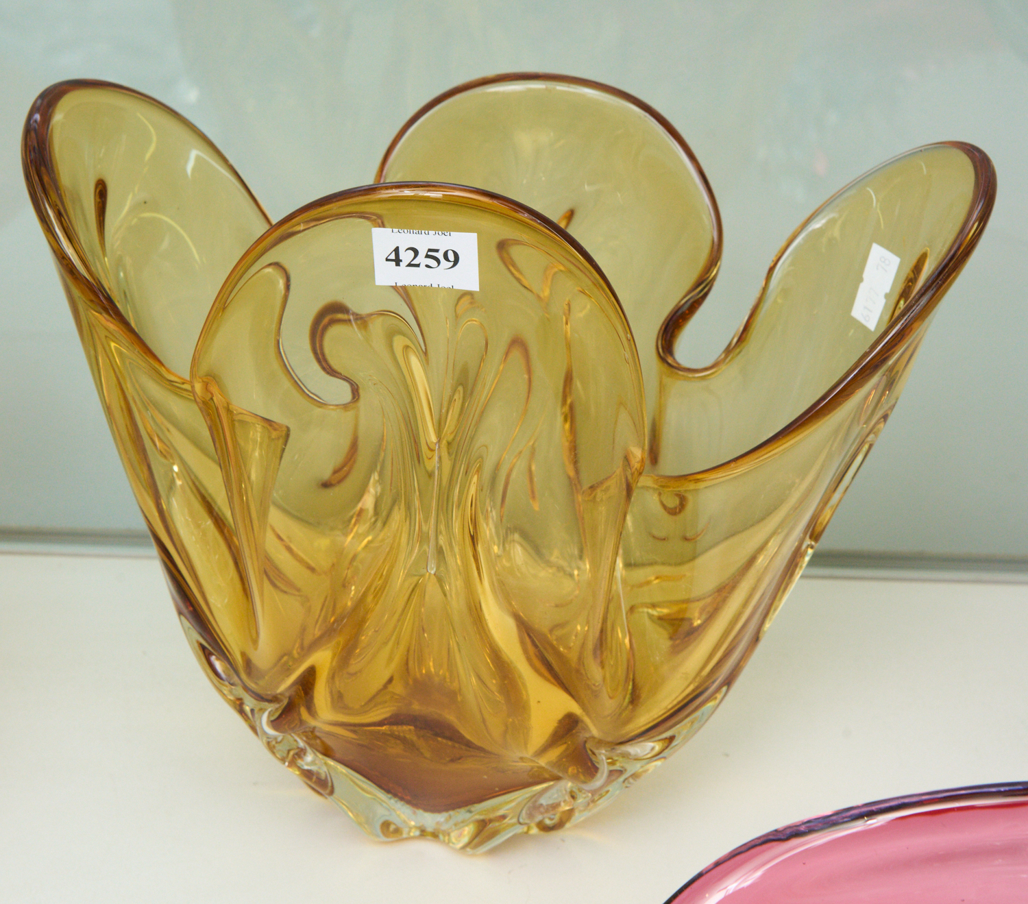 A RETRO FREE FORM AMBER GLASS VASE W.26CM, LEONARD JOEL LOCAL DELIVERY SIZE: SMALL