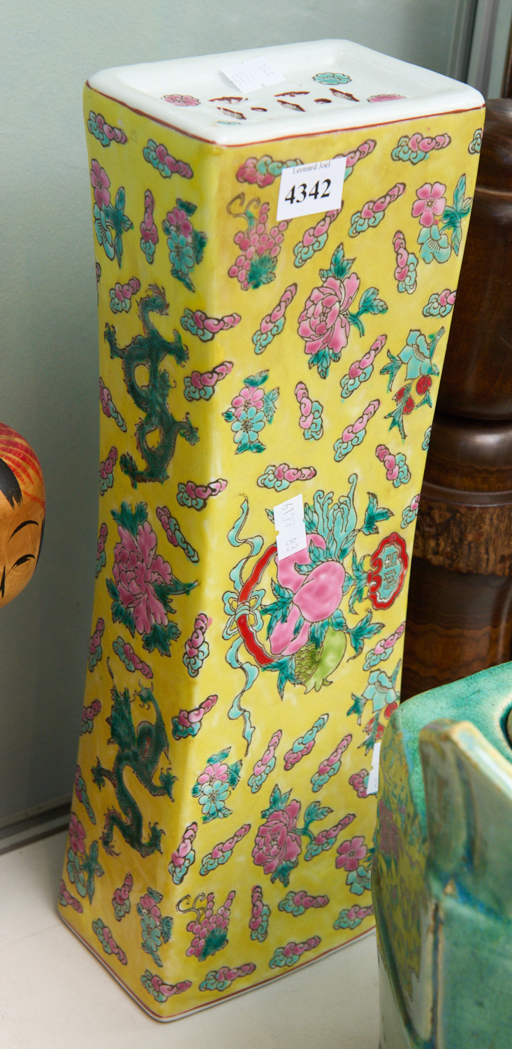 CHINESE YELLOW GROUND FLORAL DECORATED CERAMIC PILLOW H.34CM, LEONARD JOEL LOCAL DELIVERY SIZE: SMALL