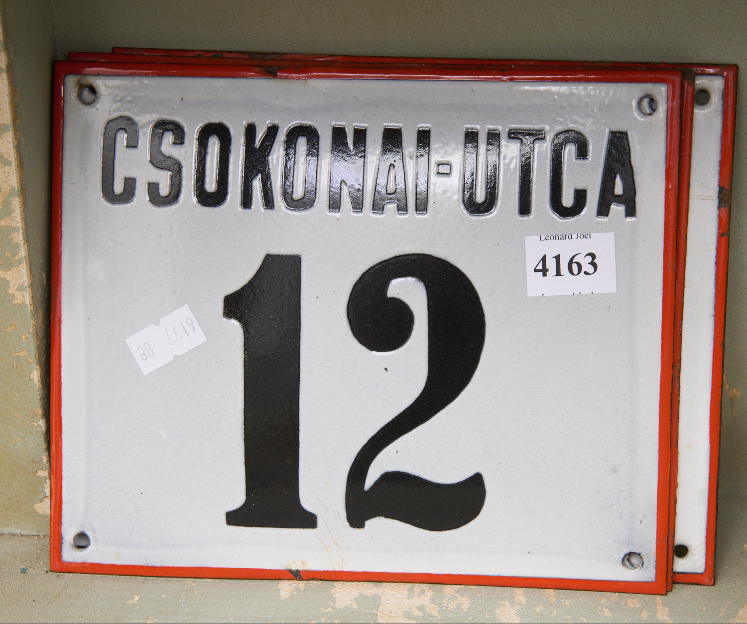 GROUP OF THREE EUROPEAN ENAMELLED HOUSE NUMBERS, LEONARD JOEL LOCAL DELIVERY SIZE: SMALL